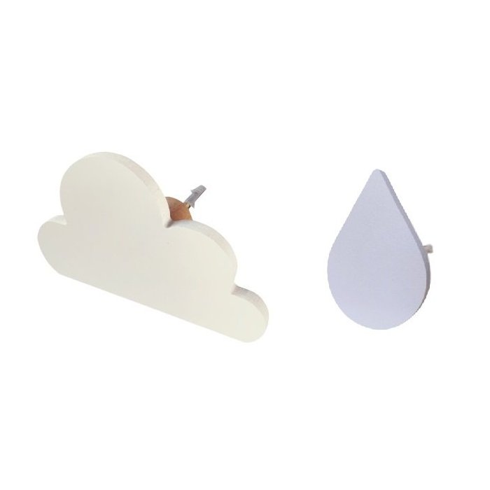 2 Ganchos de Parede Nuvem e Gota Infantil Bolsa Mochila:branco