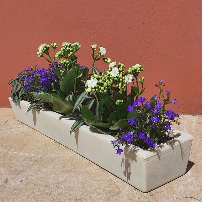 As jardineiras são feitas de polietileno, um material resistente e durável que é perfeito para o uso externo.