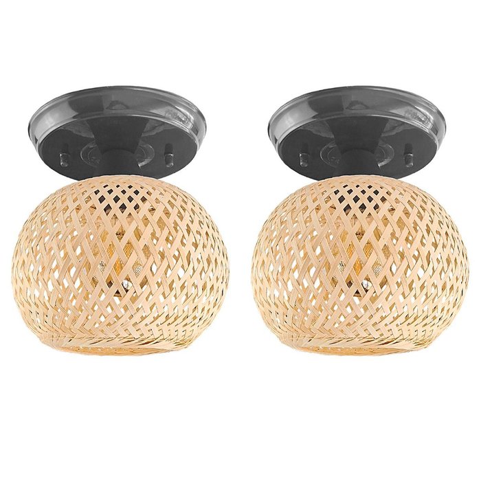 2 Luminária Fibra Natural Bambu Artesanal Plafon Boho Nat97