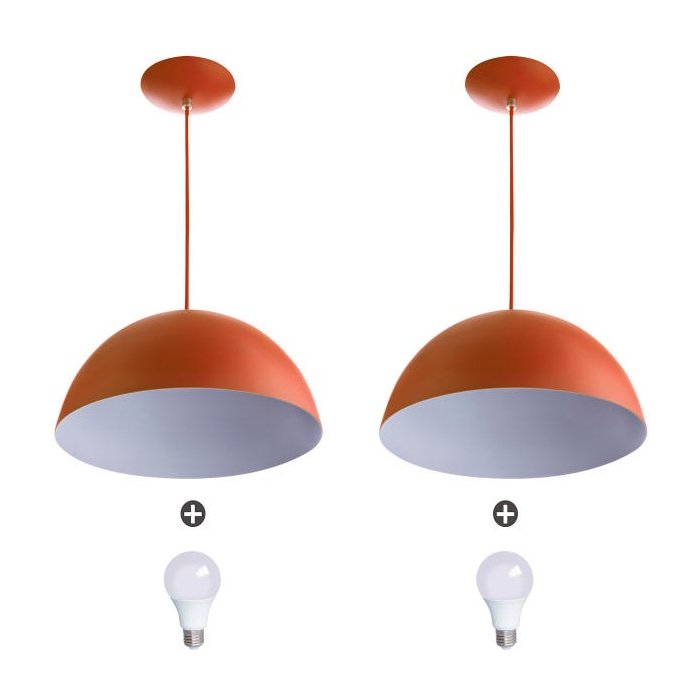 2 Lustres Pendente Meia Lua 40cm Alumínio Cobre + Lâmpada cobre