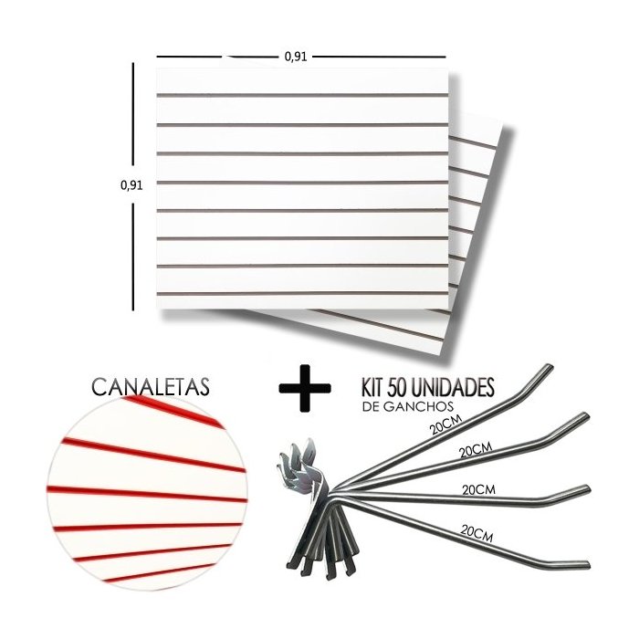 2 Paineis Canaletado - 0,91 x 0,91 + 50 Gancho 20cm + Canaletas vermelho