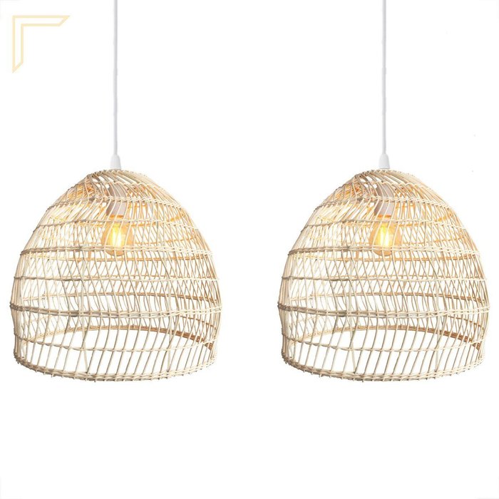 2 Pendente de Vime Fibra Natural em Rattan E27 Varanda Nat17 Natural