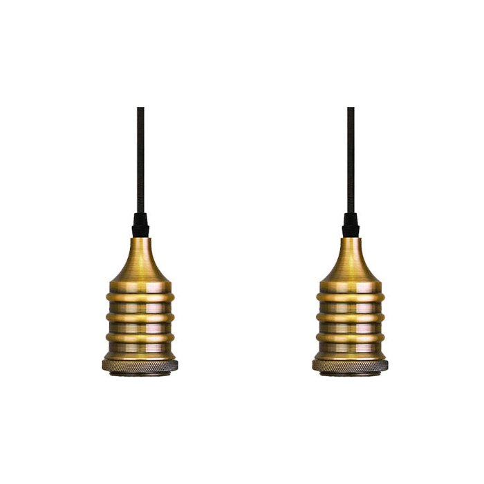 2 Pendente Fio Soquete Industrial Retro E27 Dourado 1M Alu96
