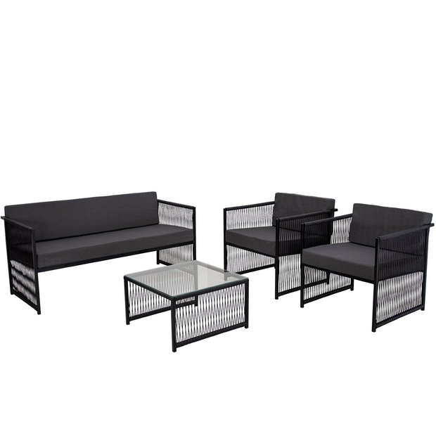 2 Poltronas, 1 Namoradeira e 1 Mesa de Centro Santiago em Fio de Fibra Sintética e Aço Carbono com Pintura Eletrostática – Panero Móveis.O Conjunto Santiago Possui altíssima qualidade, leve, com Acabamento e Design Moderno, garantindo assim Conforto e Praticidade para seu bem-estar.Fabricada em Aço Carbono com Pintura Eletrostática, podendo ficar exposto ao tempo, pois Não Enferruja e Não Descasca, seu Fio de Fibra Sintética possui Proteção U.V, proporcionado Resistência ao Sol, dando mais Durabilidade.O Conjunto Santiago é ideal para Áreas Externas e Internas como: Sala, Recepção, Sala de Estar, Área, Edícula, Chácara, Área de Festas, Jardim, Área Gourmet, Sacada, Varanda entre outros.Itens inclusos:- 2 Poltronas.- 1 Sofá Namoradeira.- 1 Mesa de Centro (Não acompanha Tampo de Vidro)Especificações do Produto:- Material do Acabamento: Fio de Fibra Sintética com Uv Protection, proporciona maior durabilidade.- Material da Estrutura: Aço Carbono, não enferruja.- Pintura: Eletrostática, Não Descasca.- Solda: Mig, de alta resistência.- Tecido: Aquablock Impermeável.- Espuma: 10cm- Peso Máximo Indicado: 120 KG.