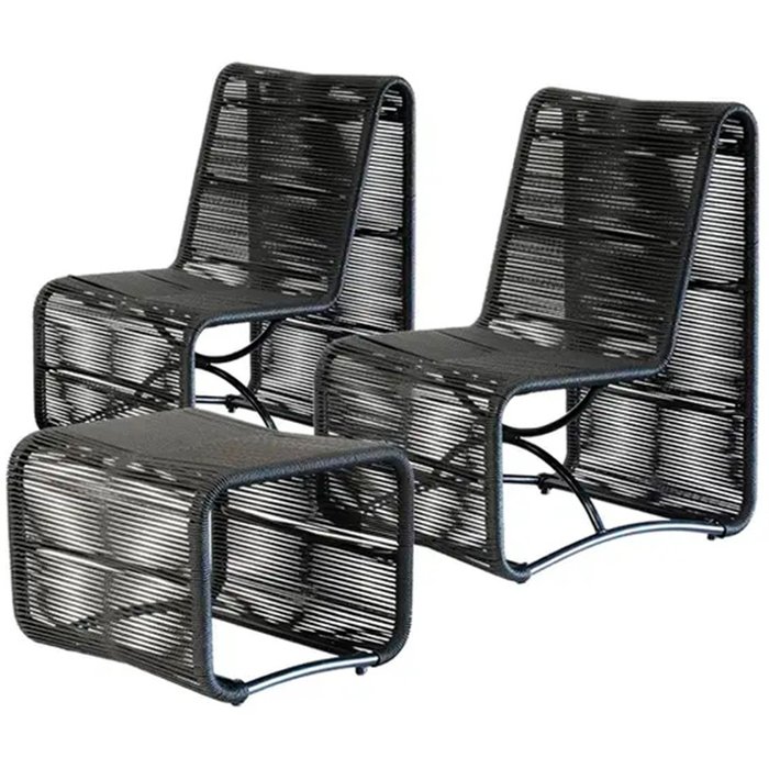 2 Poltronas Cadeira Suécia + Puff em Alumínio e Corda para Área Interna e Externa Zanutto Preto