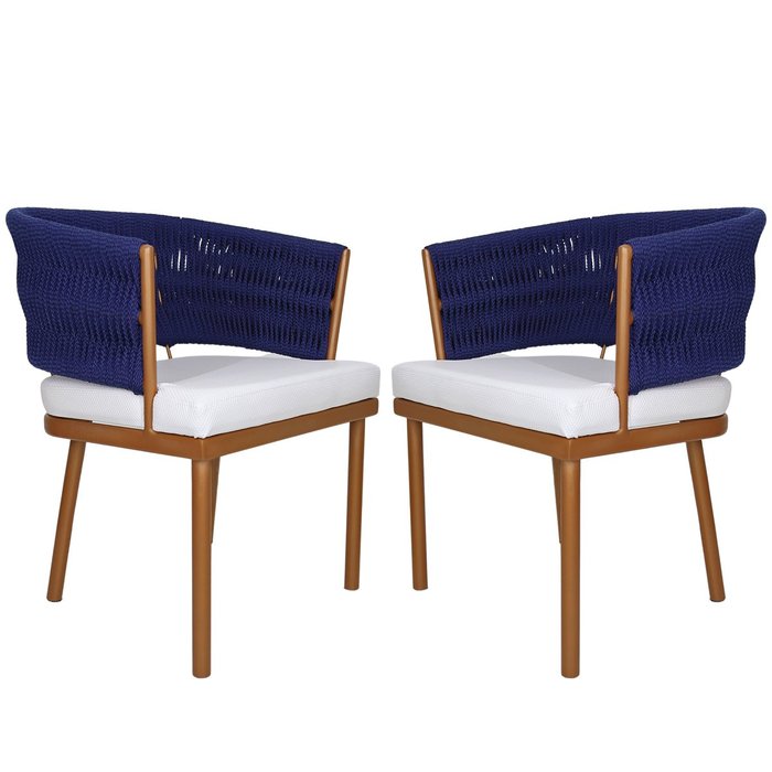 2 Poltronas Califórnia em Corda Náutica, Alumínio com Pintura Bronze e Assento Estofado p/ Recepção