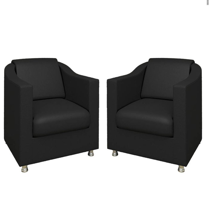 2 Poltronas Decorativa Bia Assento Corino Preto Pés Cromado - Folk Móveis
