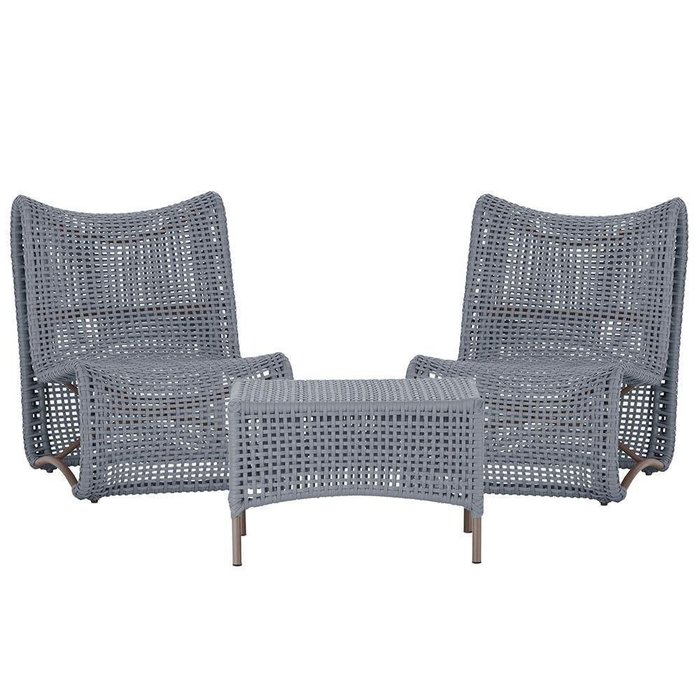2 Poltronas E Mesa Texas Alumínio Marrom Corda Náutica Trama Prata