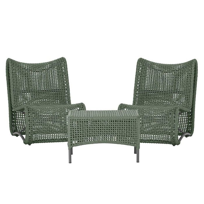 2 Poltronas E Mesa Texas Alumínio Preto Corda Náutica Trama Verde