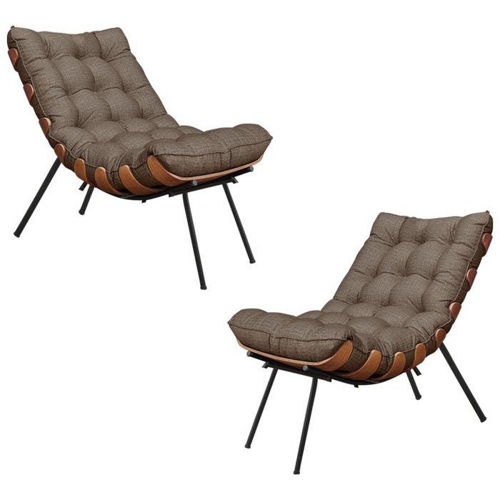 2 Poltronas Sala de Estar Base de Madeira Preto Linho Marrom