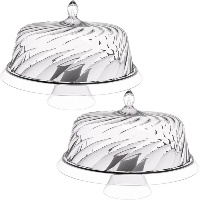 2 Porta Bolos Boleira com Cúpula e Pé 34cm Transparente Torta Doces Crippa Glassy.