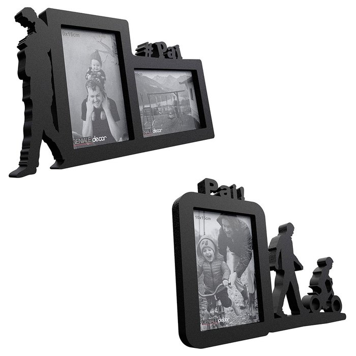 2 Porta Retrato Lembrança Para Papais Pai Ensinando Filho:Preto
