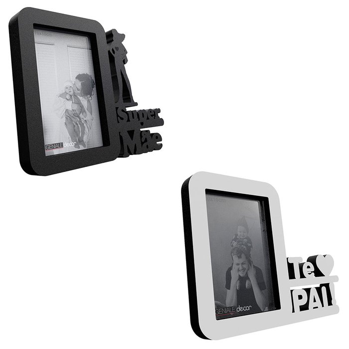 2 Porta Retratos Criativos Super Mamãe E Te Amo Papai:Preto e Branco Preto e Branco