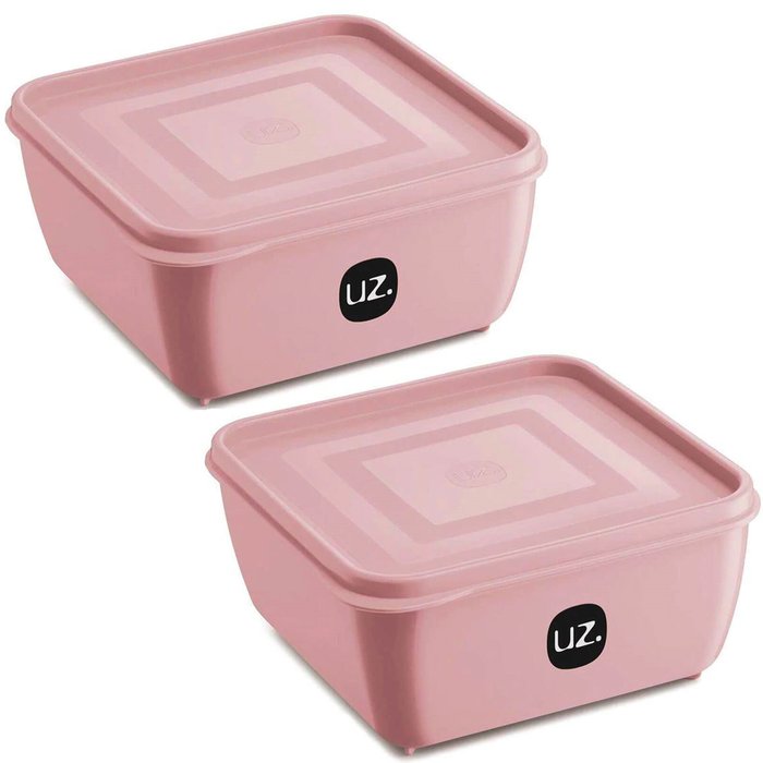 2 Potes Plásticos Uz Rosa Quadrado Multiuso 1,5l com Tampa Premium Alimentos Rosa