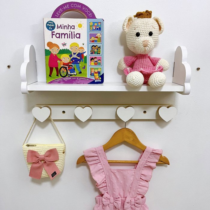 PRATELEIRA COM CABIDEIRO DE PAREDE SOUVENIR DECOR | PRODUTO RESISTENTE (100% aprovado)Ideais para compor e decorar o quartinho do seu bebê!