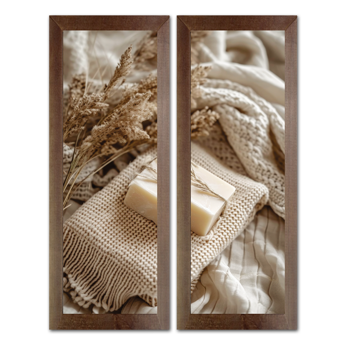 2 Quadros Decorativos Banheiro Social Lavabo Toalete Sabonete Bege 20x60cm