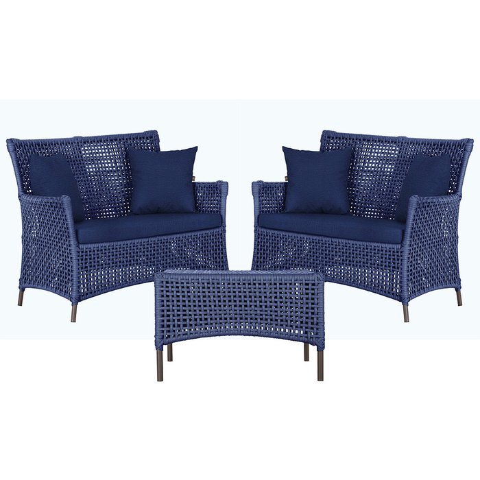 2 Sofá Área e Mesa Igapó Alumínio Pintura Marrom Corda Náutica Estofado Impermeável Almofada 10 Tram Azul