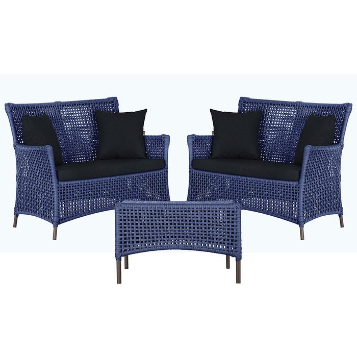 2 Sofá Área e Mesa Igapó Alumínio Pintura Marrom Corda Náutica Estofado Impermeável Almofada 12 Tram Azul