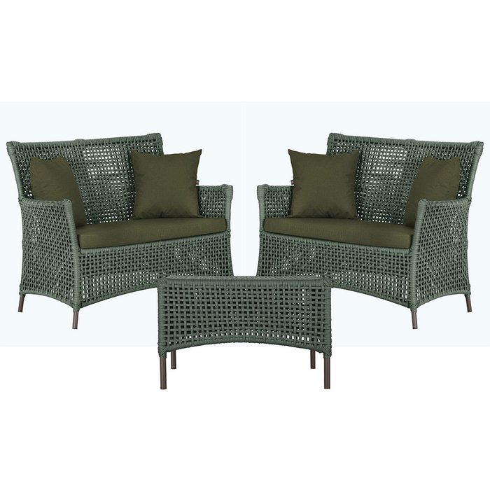 2 Sofá Área e Mesa Igapó Alumínio Pintura Marrom Corda Náutica Estofado Impermeável Almofada 13 Tram Verde