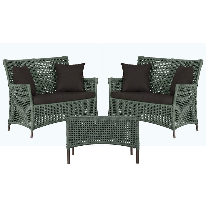 2 Sofá Área e Mesa Igapó Alumínio Pintura Marrom Corda Náutica Estofado Impermeável Almofada 9 Trama Verde