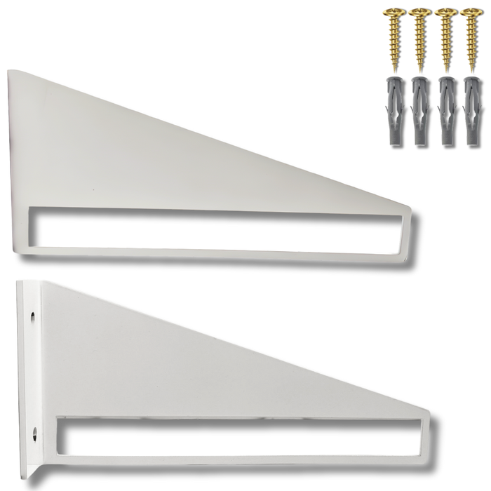 2 Suportes Invertidos para Prateleiras Acabamento Aço Vazado Mão Francesa Design Moderno Branco