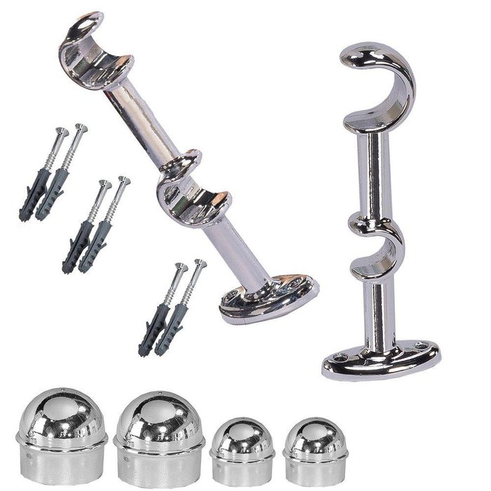 2 Suportes Metal Varão Cortina Duplo 28/19 Mm Com Ponteiras Prata