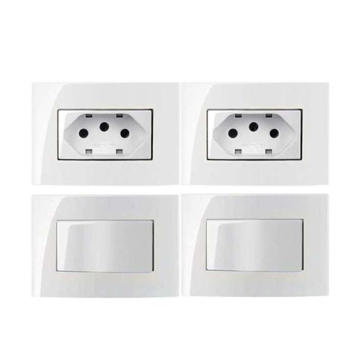 2 Tomada 3 Pinos 20a + 2 Interruptor Embutir Móvel Branco Branco