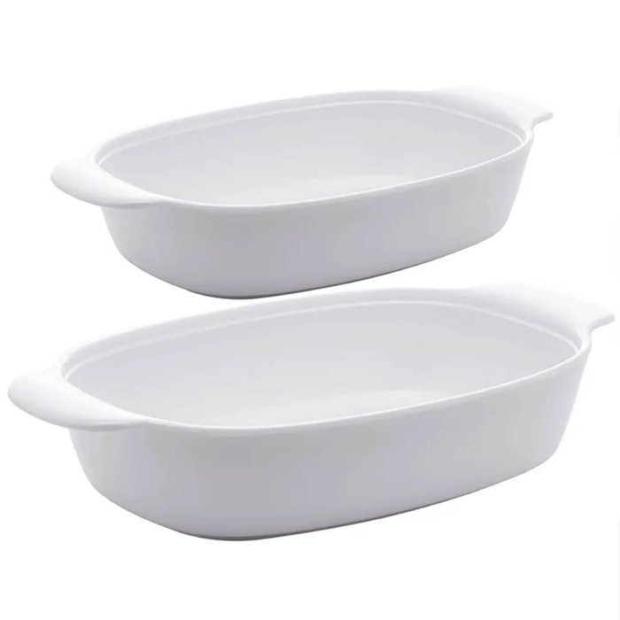 2 Travessas Melamina Branca P e M com Alças Laterais para Servir Arroz Saladas Lyor
