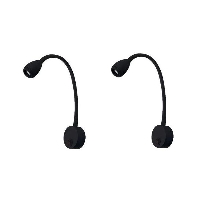 2 Un Arandela Foco Movel Preto Cabeceira Leitura Led 3W 3000K Ali29 Preto