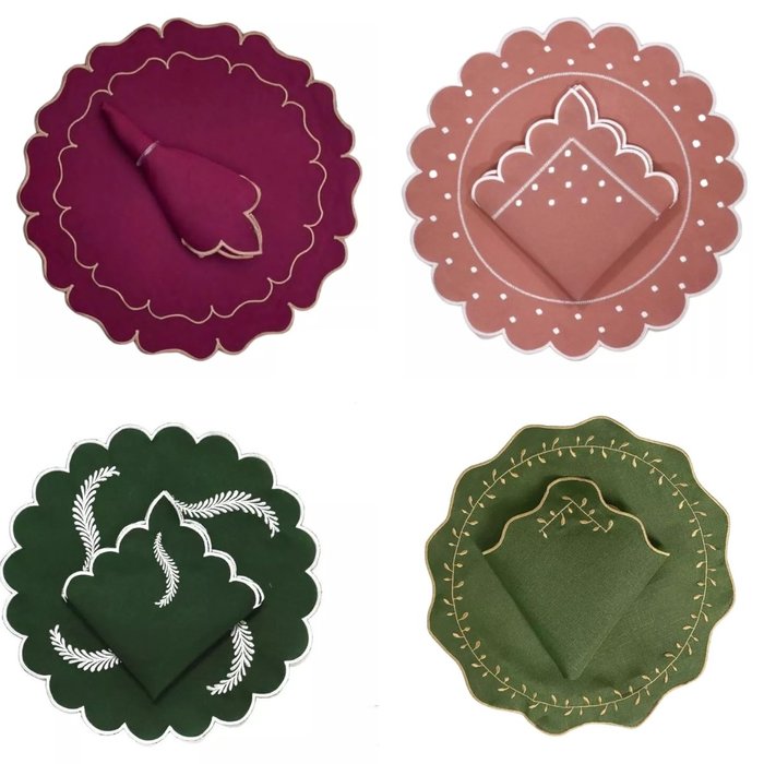 20 kits de 12 peças (6 guardanapos e 6 lugares americanos), totalizando em 240 peças.