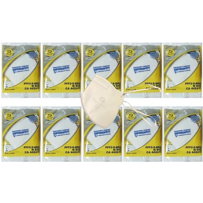 Kit 20 unidades de Respirador/Máscara Descartável PFF2-S-BR N95 sem válvula - cor Branca - Marca SuperSefty