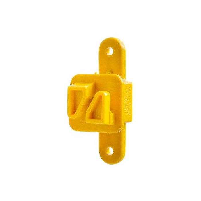 Características: Usado para passagem de arame ou fio eletroplástico no mourão de madeira; Pode ser fixado com pregos, grampos ou parafusos; Possui proteção contra raios ultravioletas; Resistencia a tração: 793 N Isolação de ate 38,900 Volts; Embalagem com 20 unidades; São pregados na madeira onde o fio é preso com facilidade.