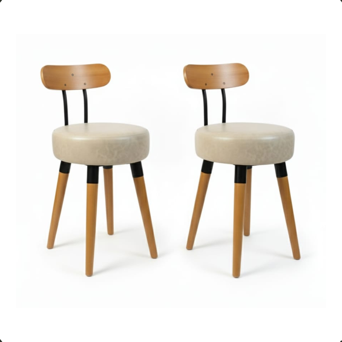 2u Banqueta Baixa Encosto Ergonomico Cozinha Premium Madeira Pé Palito Maderevest Bege