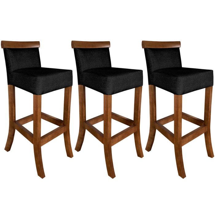 3 Banco Alto Cadeira de Balcão Restaurante Cozinha Gourmet Moderna Confortavel Bistro Premium Valios IMBUIA | PRETO