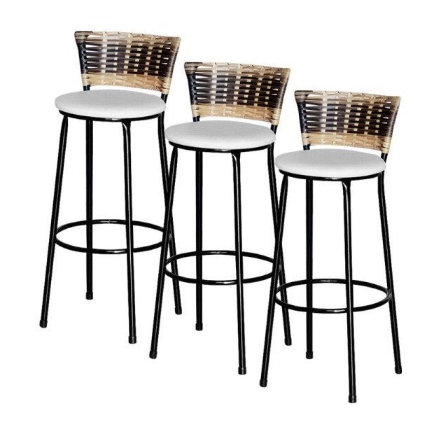 3 Banquetas Alta Para Cozinha Ratan Hawai Cappuccino Premium Branco