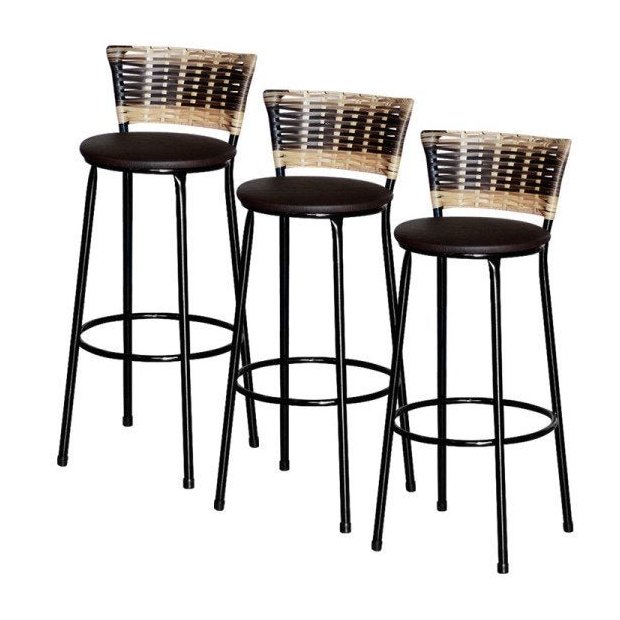 3 Banquetas Alta Para Cozinha Ratan Hawai Cappuccino Premium Marrom