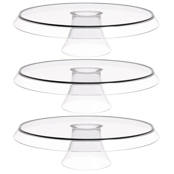 3 Bases Porta Bolos Tortas Doces 30cm com Pé Transparente Glassy Crippa