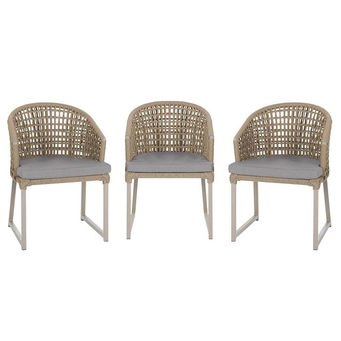 3 Cadeira Noronha Aluminio Micro Pintura Champanhe, Tr. Telinha Corda Nautica Rami, Estofado -