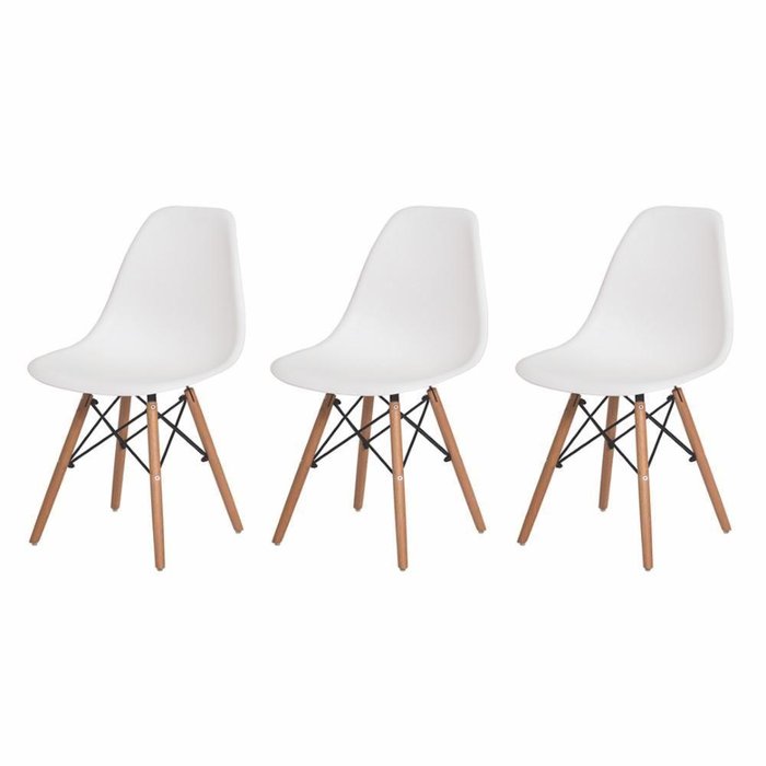 Kit 3 Cadeiras Com Encosto Para Mesa De Jantar Cozinha Charles Eames Eiffel Base Madeira Wood Branca Branco Bem Vindo a Baba Shop. Kit ;3 Cadeiras Com Encosto Para Mesa De Jantar Sala Cozinha Escrivainha Penteadeira Charles Eames Eiffel Base MadeiraVibrante, alegre e moderna, a Cadeira Eiffel é o tipo de mobiliário para quem busca um ambiente criativo e jovial! Seu design inovador esbanja personalidade e traz detalhes únicos e exclusivos. Seja no escritório ou em casa, mesa de jantar, cozinha, escrivaninha, essa mobília criaria um ponto de destaque na sua decoração, deixando ela mais receptiva e aconchegante.Resistente e de alta qualidade