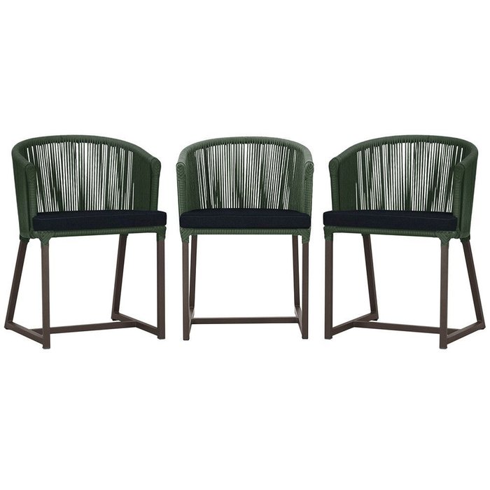 3 Cadeiras de Jantar Área Noronha em Alumínio com Pintura Marrom Corda Náutica E12 Trama Original Verde