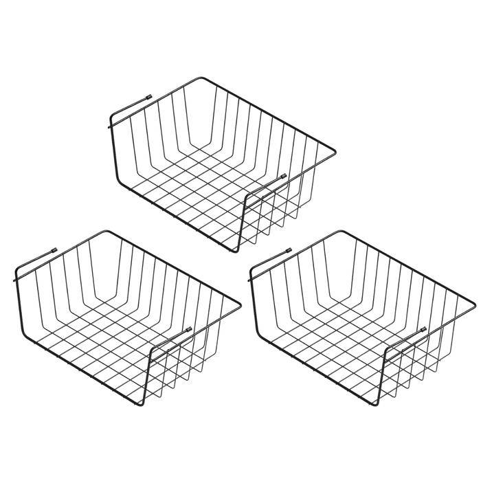 3 Cesto Suspenso Organizador Encaixe Armário Prateleira 46cm Preto