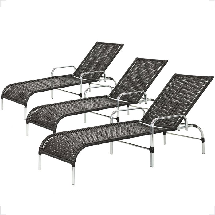 3 Espreguiçadeiras Catar Alumínio Piscina Praia Jardim:preto Preto