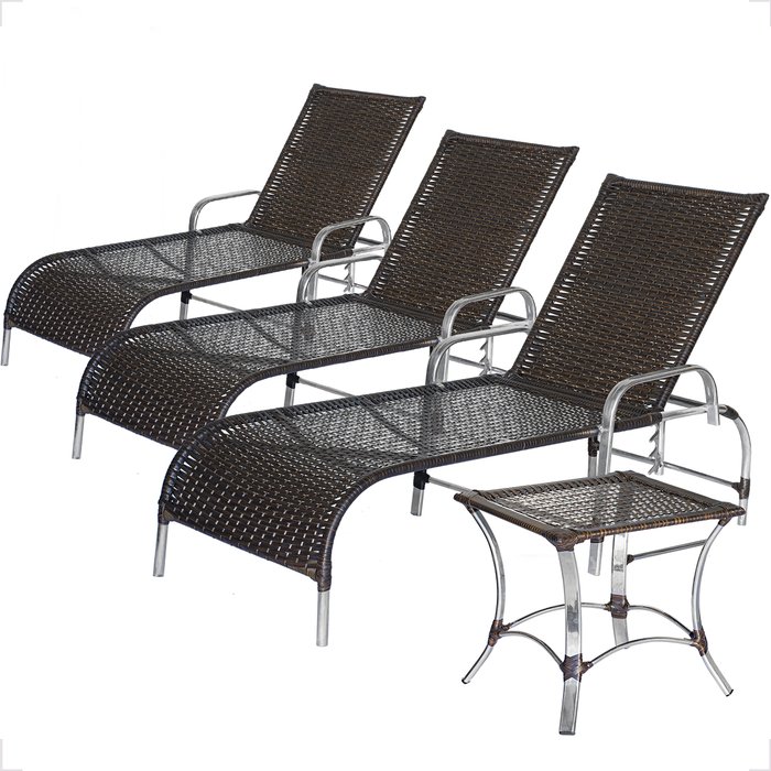 3 Espreguiçadeiras e Mesa Catar Alumínio Piscina Praia:pedra Ferro