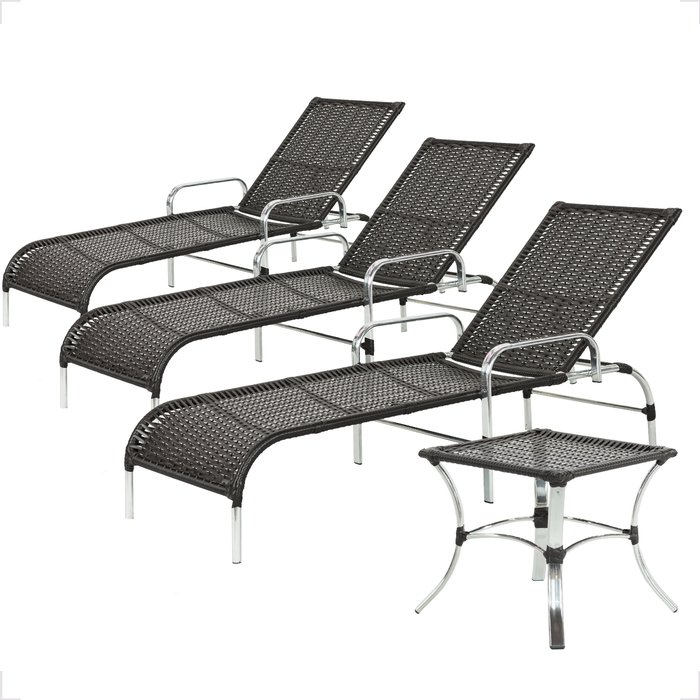 3 Espreguiçadeiras e Mesa Catar Alumínio Piscina Praia:preto Preto