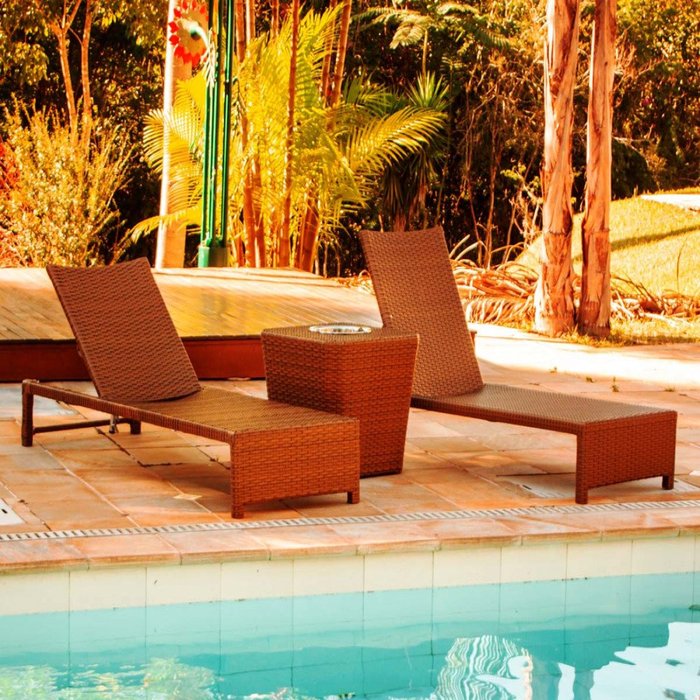 3 Espreguiçadeiras Grécia e Mesa Grécia em Alumínio e Fibra Sintética Piscina, Jardim Pedra Ferro