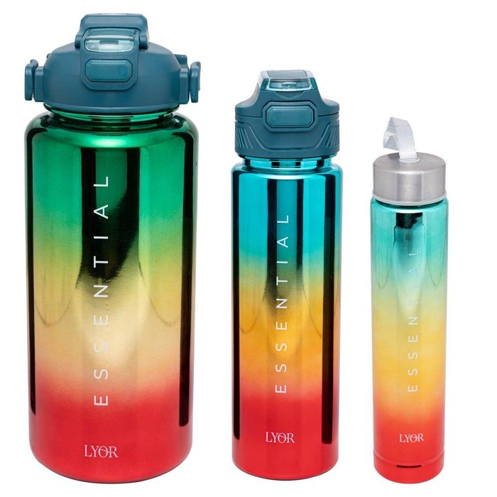 3 Garrafas Lyor Squeeze de Policarbonato Metalizado Verde Contém: 3 Garrafas Lava Louça: NãoMicroondas: NãoForno: NãoFogão: NãoMedidas Produto: Altura 29,50cm x Largura 10,50cm x Comprimento 29,50cmPeso: 0,41KgCor: VerdeMaterial: PolicarbonatoLavar com detergente neutro, esponja macia e secar imediatamente.