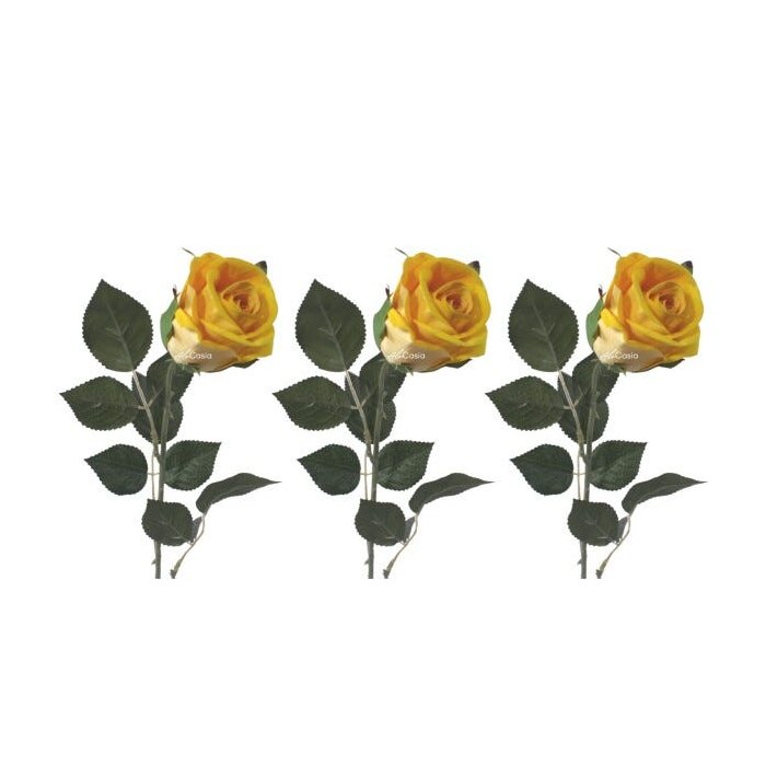 AloCasia - 3 Hastes Rosa Unitária 71cm Artificial (Amarelo)ADICIONE BELEZA E ENCANTO AO SEU ARRANJO. A haste de Rosa Unitária tem todo o frescor e beleza de uma rosa recém colhida, com folhas verdes de seda e espinhos simulados em sua haste. Com todo o romantismo clássico, ela é ideal para fazer arranjos e enfeites sofisticados. Na hora da decoração, a haste rosa unitária acrescenta elegância e charme com suas pétalas arredondadas e uma textura aveludada em seu interior, combina com o vaso solitário, ficando muito bem exposta em vasos altos e finos, sendo possível colocá-la com elegância em sua mesa de escritório ou no seu bufê.Com sua cor ousada, é ideal para trazer vida e elegância aos buquês, trazendo um toque diferenciado aos arranjos florais. Tem como vantagem o fato de não murchar e preservar o momento de uma rosa no meio de sua floração.VANTAGENS:- Flores artificiais, não necessitam de água, luz, poda ou adubo- São mais econômicas, considerando sua durabilidade- A manutenção é simples, sendo ideais para pessoas ocupadas- Flores artificiais estão disponíveis em todas as época do ano, independentemente do clima- Não correm o risco de murchar, morrer ou causar alergias, sendo perfeitas para ambientes comerciais ou consultórios- Não são comprometidas por pragas nem atraem insetos- Produto lavável com pano umedecido em águaINFORMAÇÕES IMPORTANTES- 1 haste Rosa Unitária com 9 folhas- Para compor um arranjo podem ser necessárias várias hastes deste produto ou de outro, como demonstrado nas imagens.- As cores das flores e plantas artificiais podem apresentar ligeira variação.- As imagens dos arranjos são ilustrativas, vasos e objetos ao redor não acompanham o produto.- O caule da flor é flexível e pode ser cortado com alicate, podendo assumir a posição e tamanho que desejar.- As plantas permanentes são embaladas de forma compacta e os caules dobrados. Isso não afeta a qualidade e beleza do produto, basta desdobrá-los e manipular as pétalas para obter a abertura desejada.DIMENSÕES:Quantidade de flores: 1 flor com 9 folhasComprimento máximo: 71cmCabo: 64cmFlor: 7x7cmLargura máxima: 10cmMaterial: seda, arame e plásticoPeso: 37g