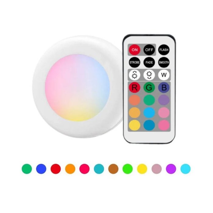 3 Lâmpada Luminária Led RGB Controle Remoto Para Armário