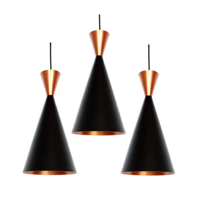 3 Luminárias Pendentes Cone Canadá Sala Cozinha Balcão Churrasqueira Preto/Cobre