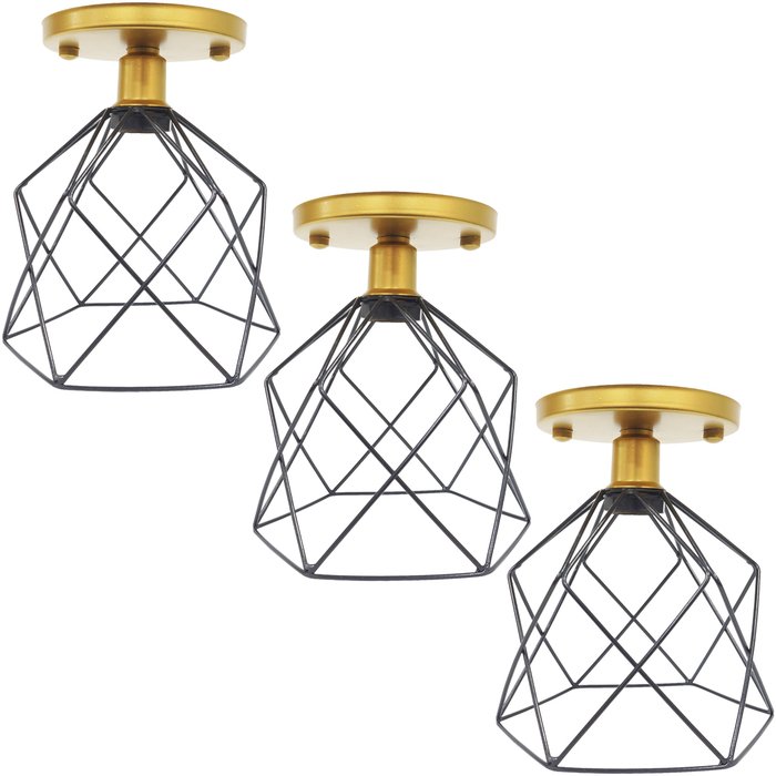 3 Lustres Teto Plafon Industrial Aramado Cálice Preto Retrô Luminária Vintage Dourado Agp Preto